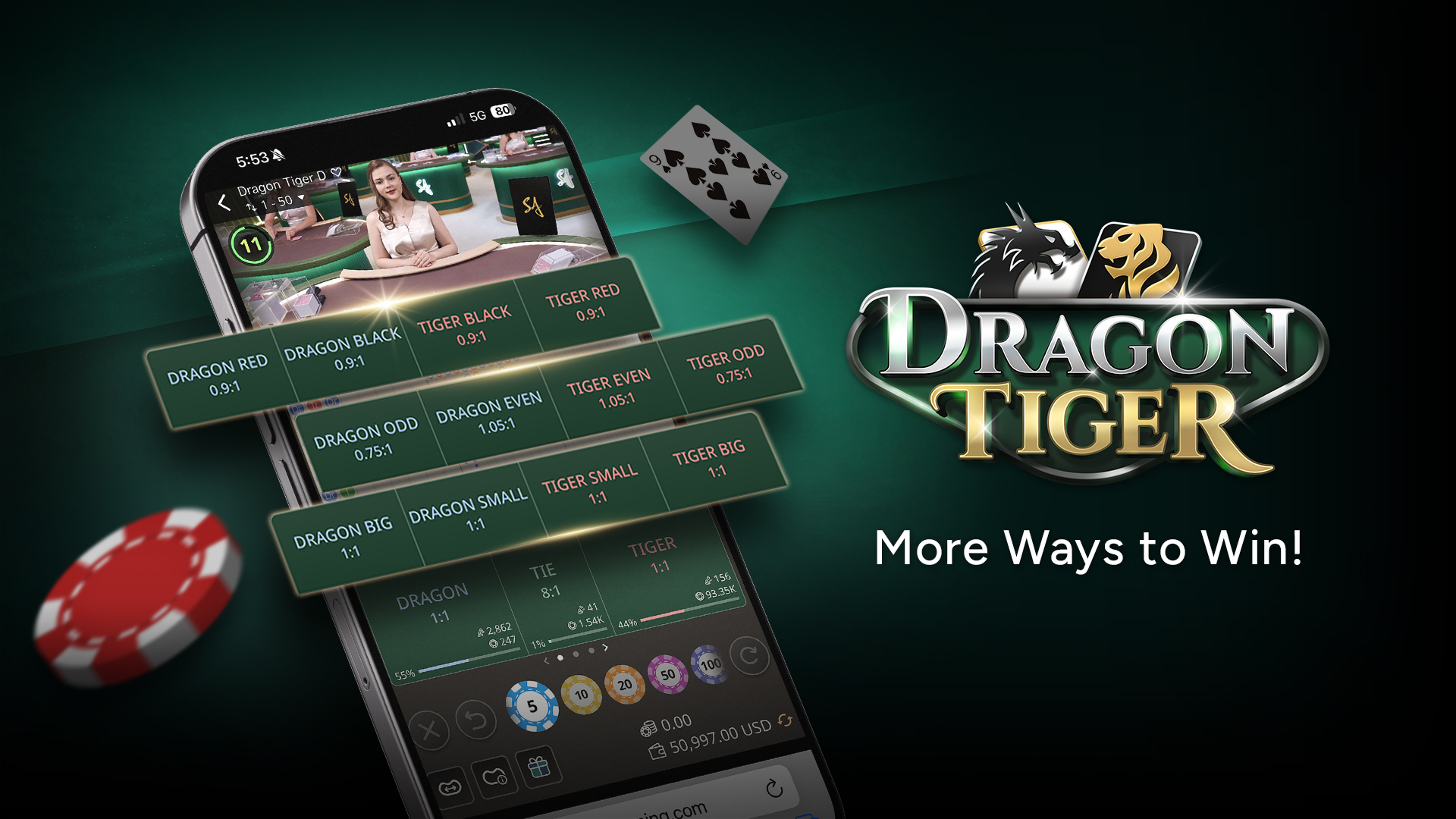 As one of the most intuitive casino games, the main bet types include only Dragon, Tiger and Tie. SA Gaming adds more fun into the classic game with the following side bet types: